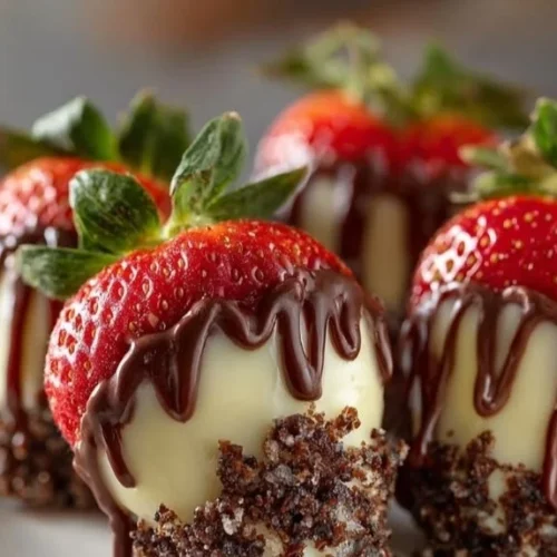 These bite-sized Chocolate Covered Cheesecake Strawberries are creamy, chocolatey, and impossibly easy — a perfect last-minute dessert for parties or a sweet weeknight treat.