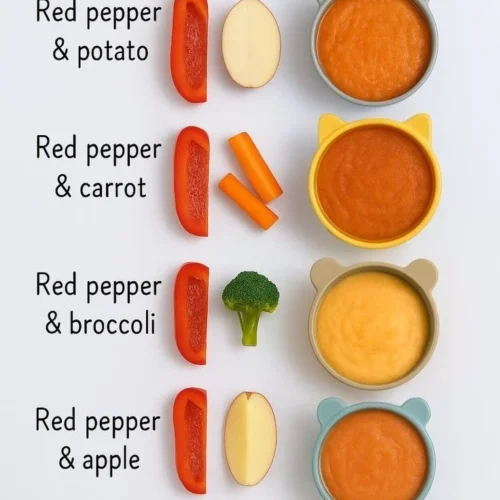 A: Introduce roasted red pepper puree after your baby has already tried single-ingredient purees and can handle soft solids — typically around 6 months, but check with your pediatrician.